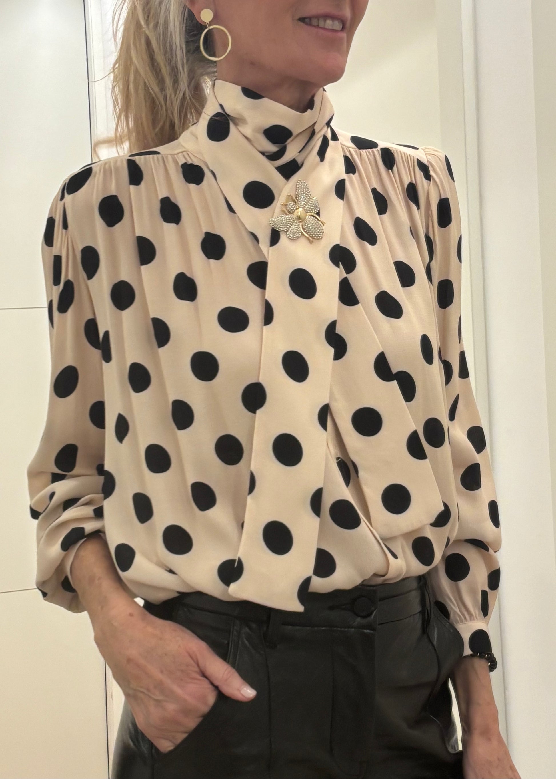 Blusa de topos con lazada en el cuello. Muy femenina.