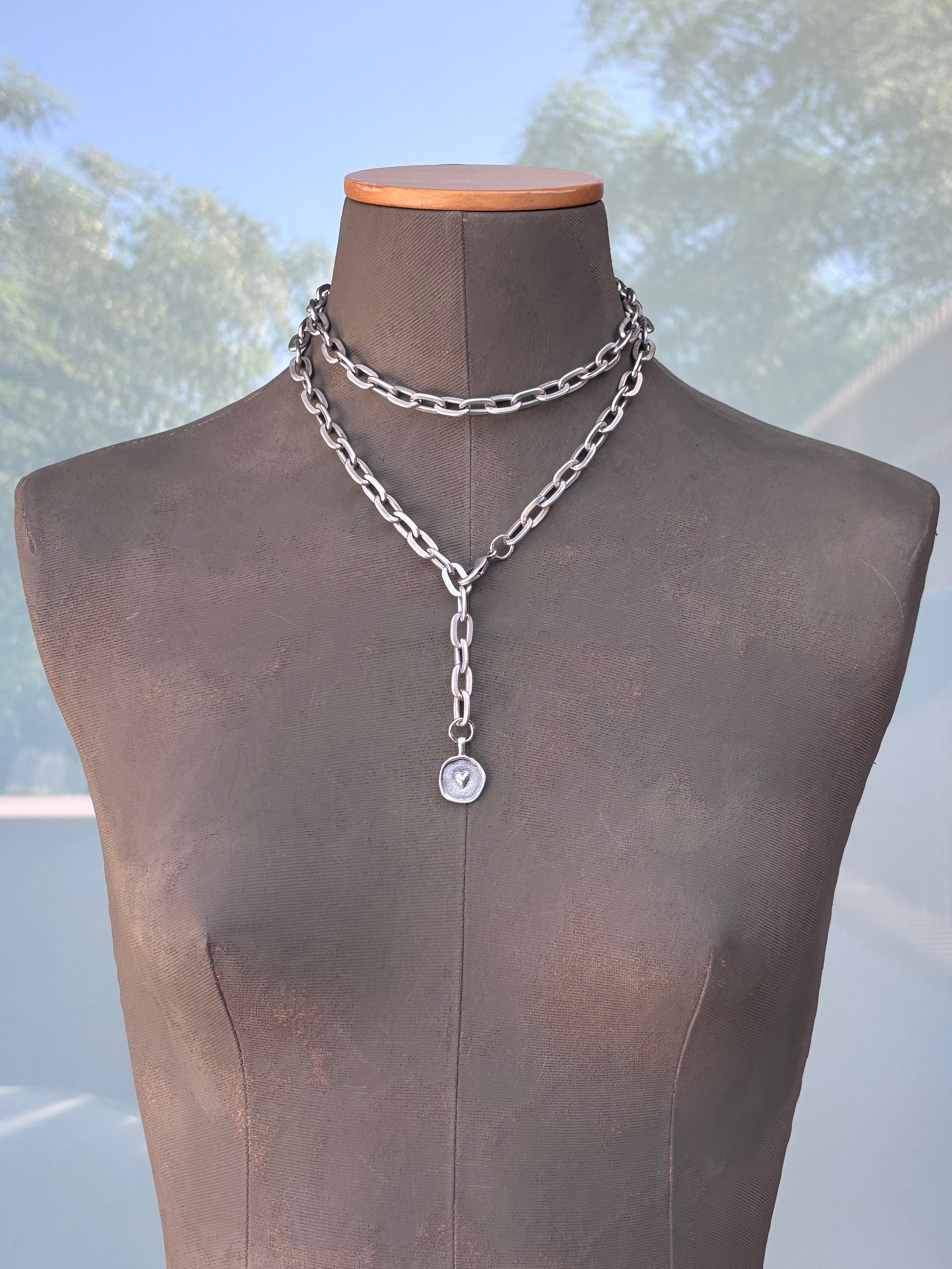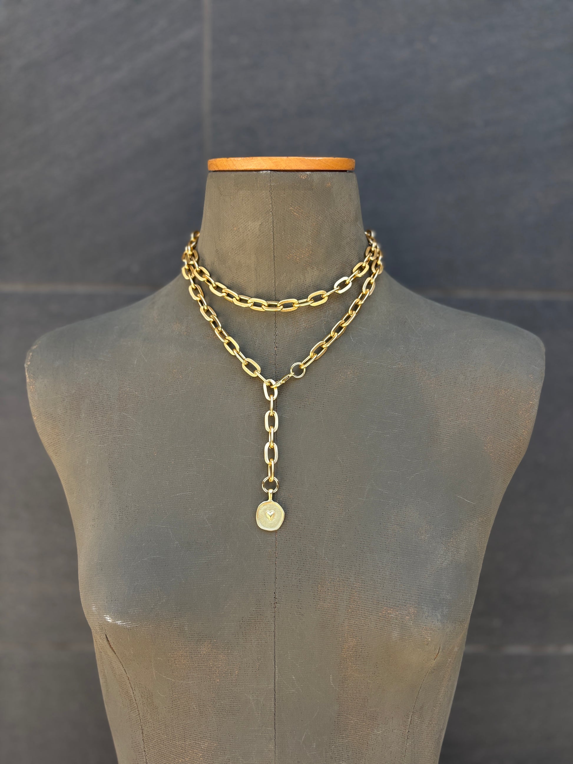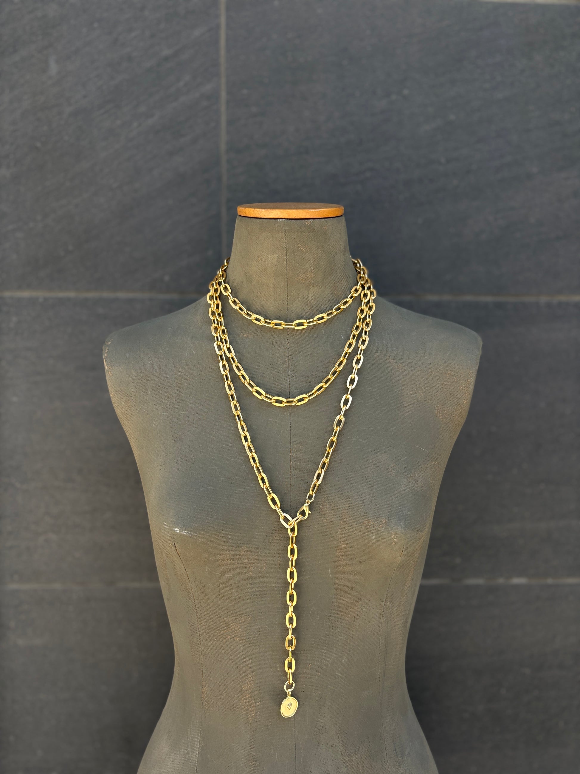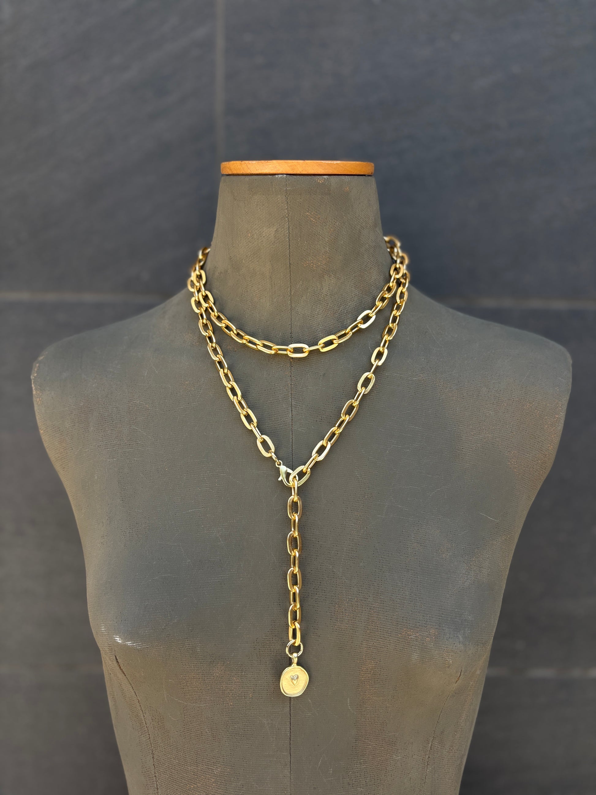 La cadena que más estiliza porque tiene un mosqueton que lo puedes coger a la altura que desees.