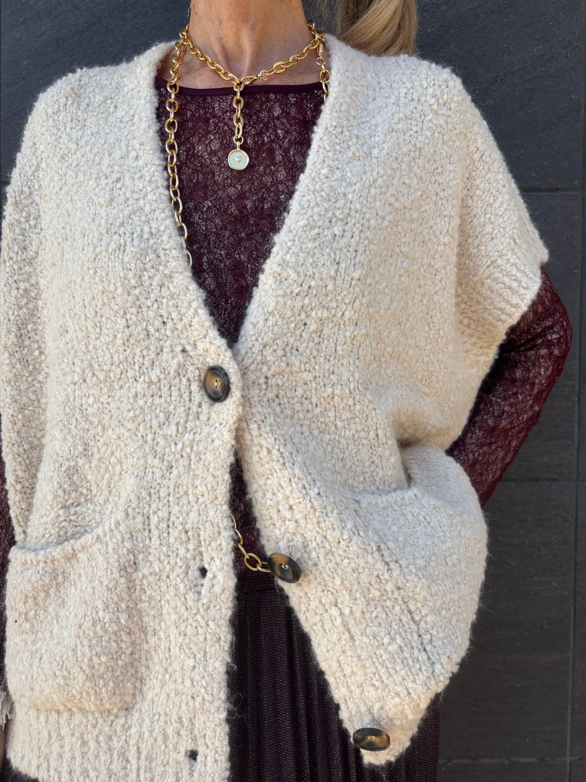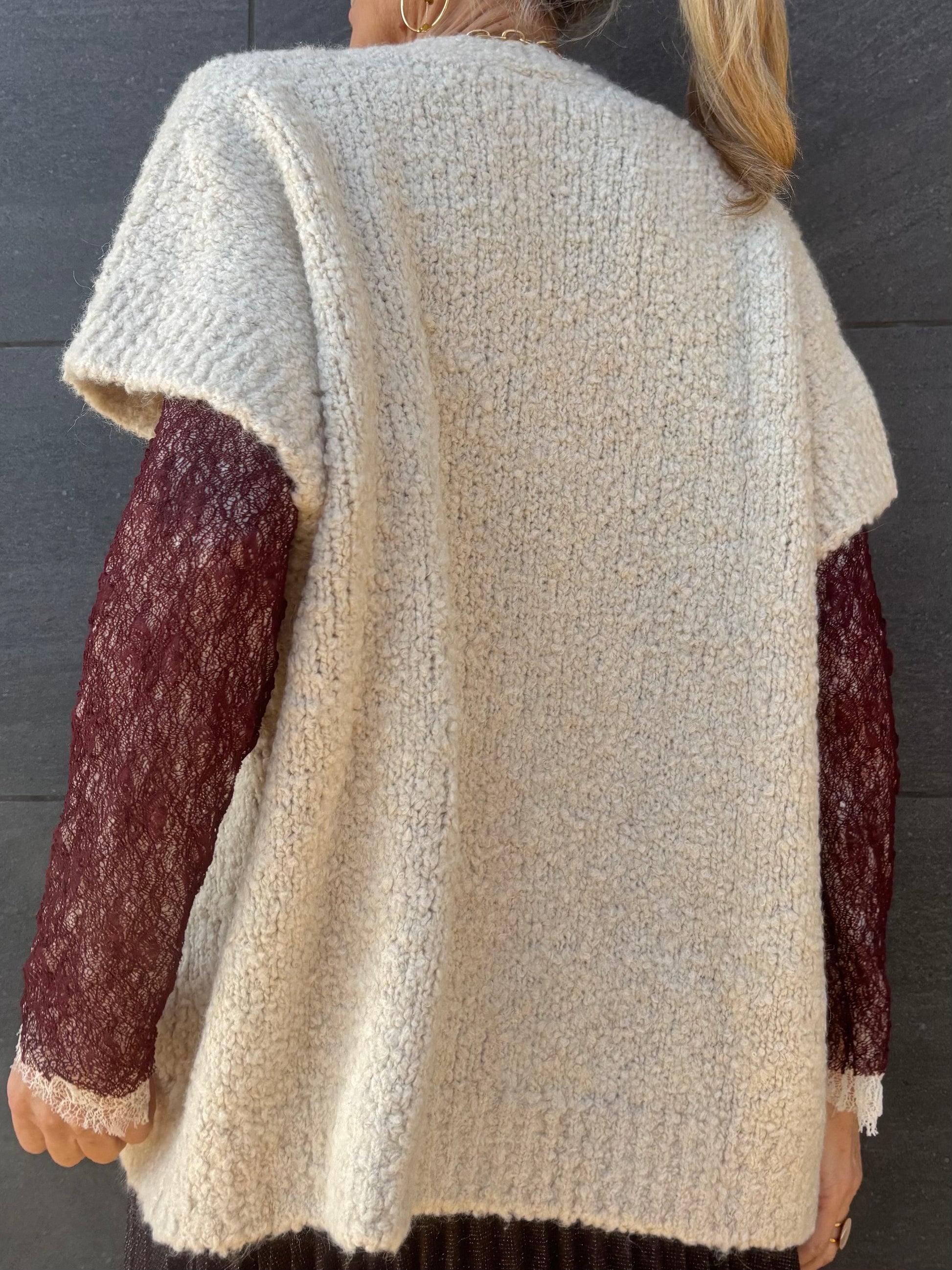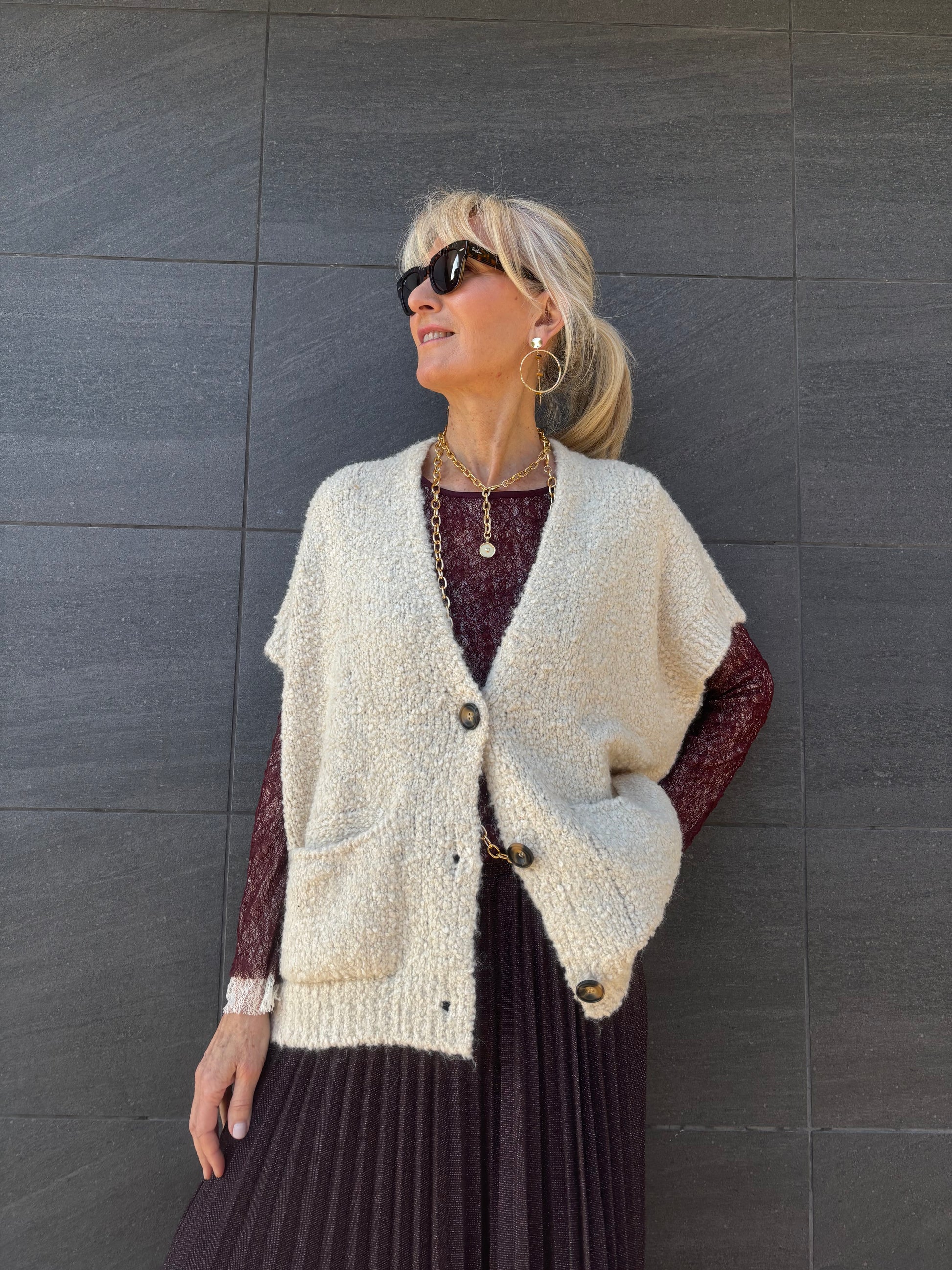 Chaleco de punto de lineas rectas con bolsillos delanteros.