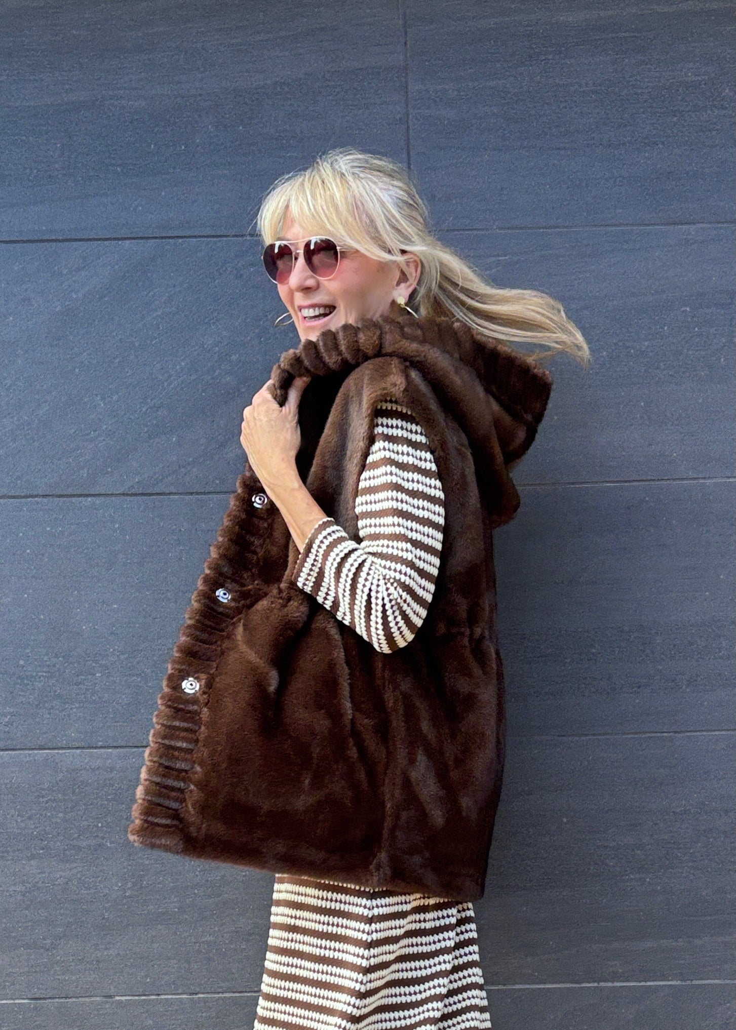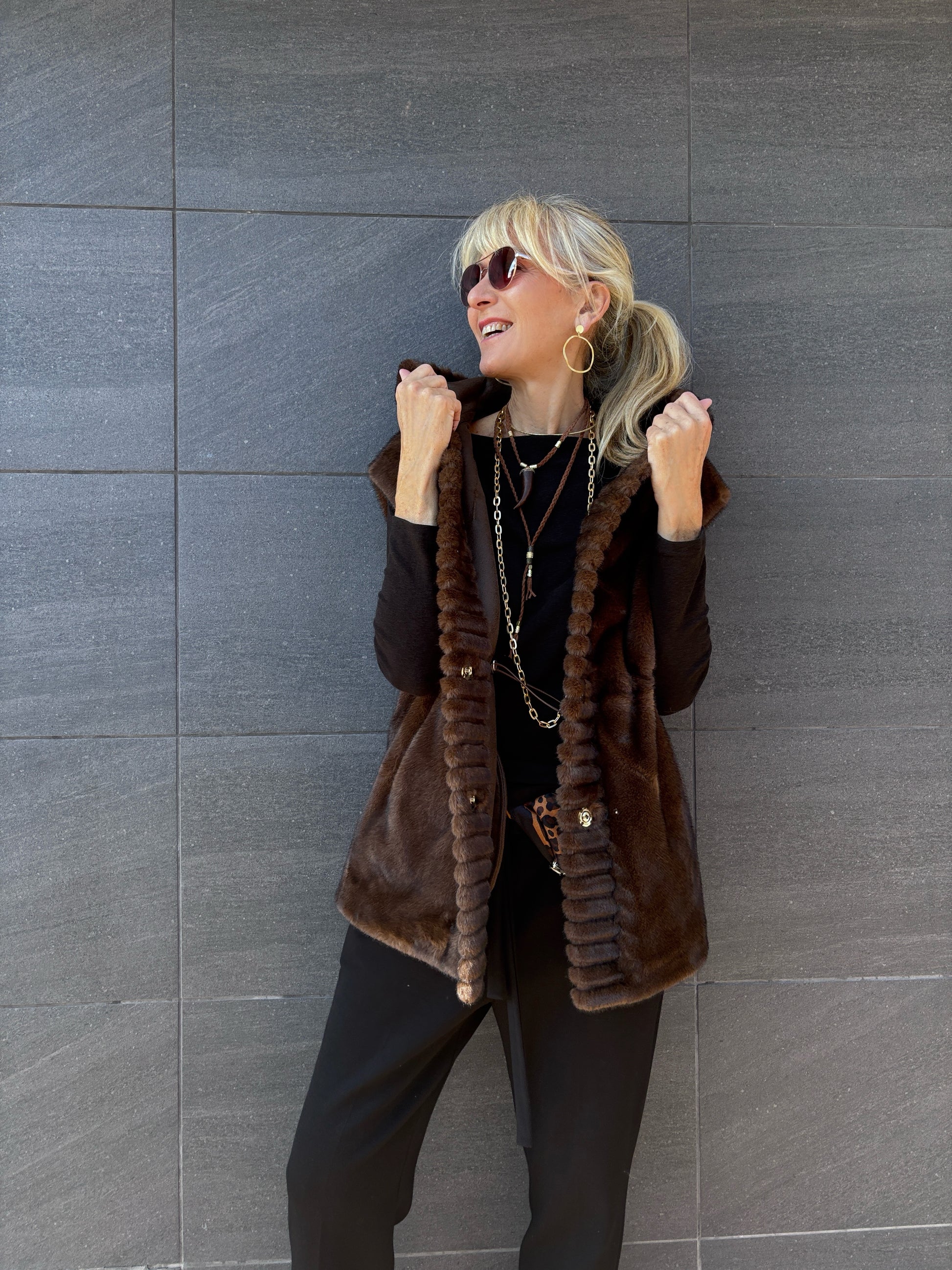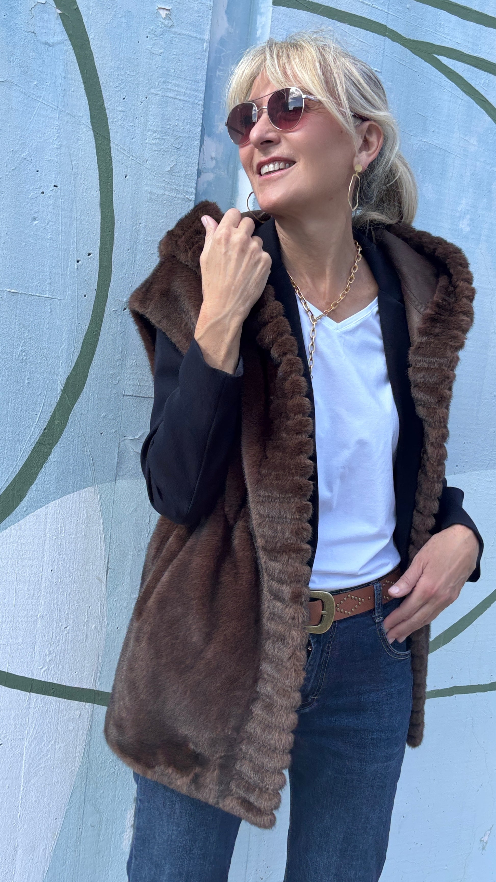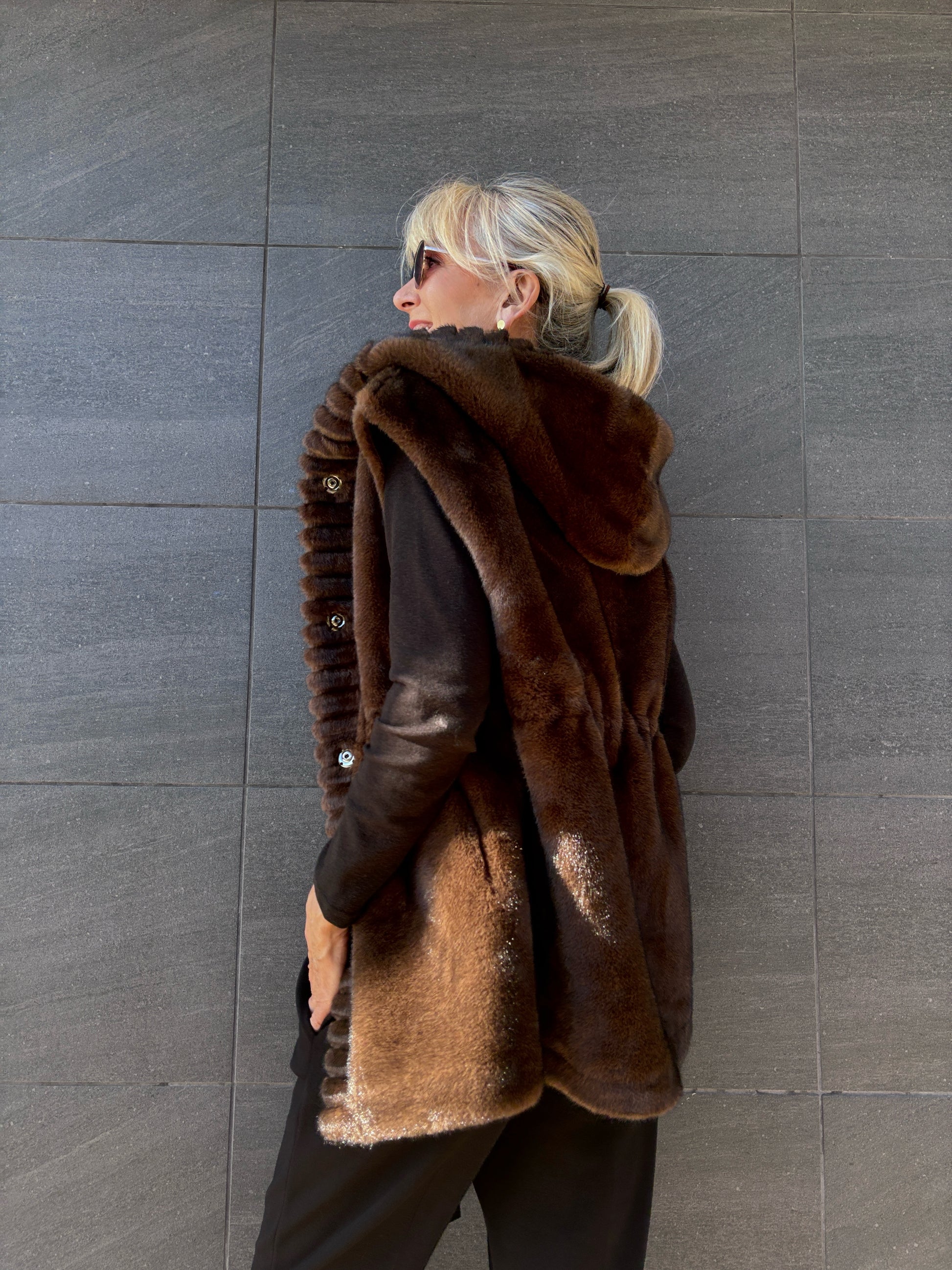 Chaleco de lineas rectas con capucha.