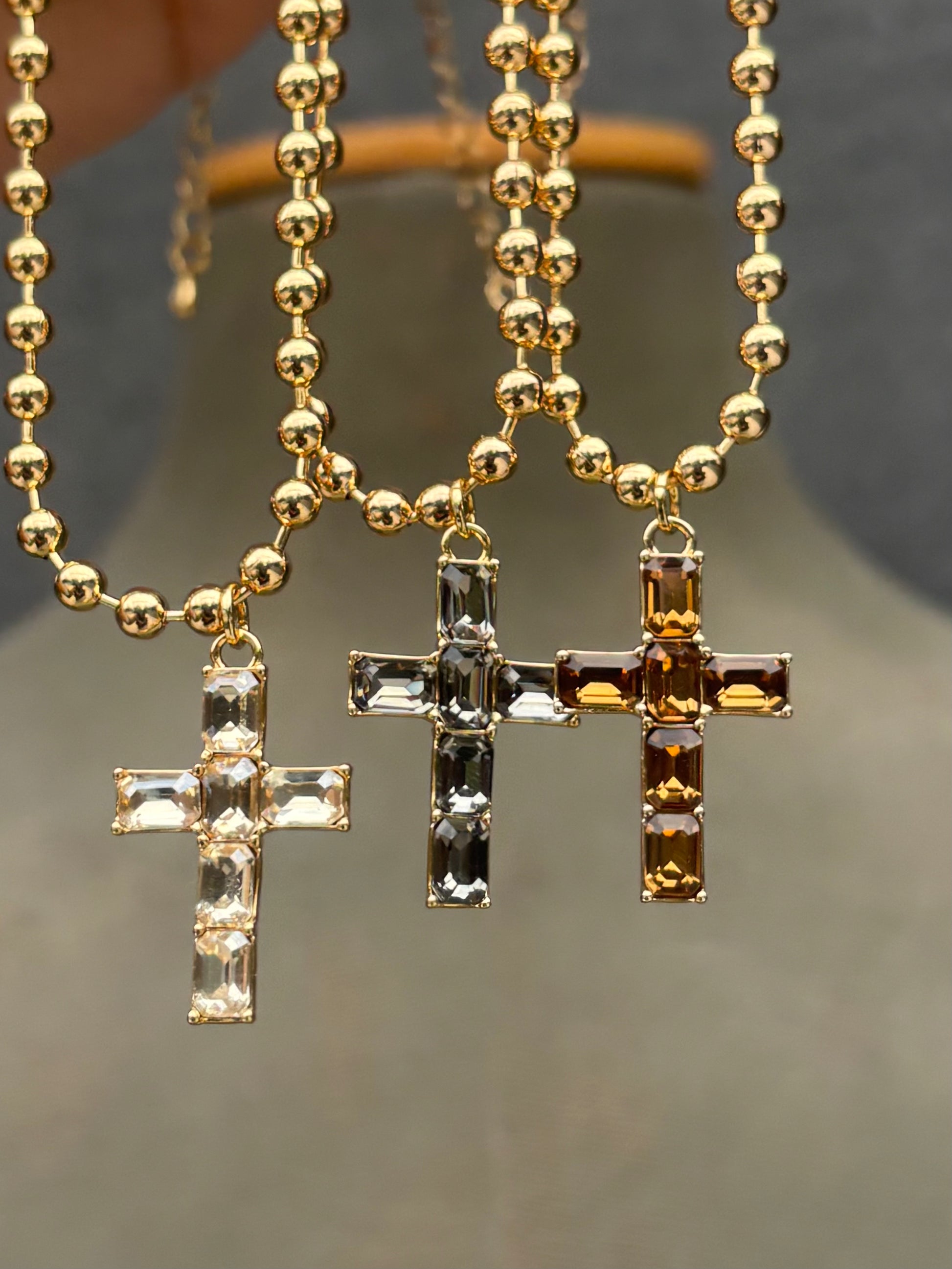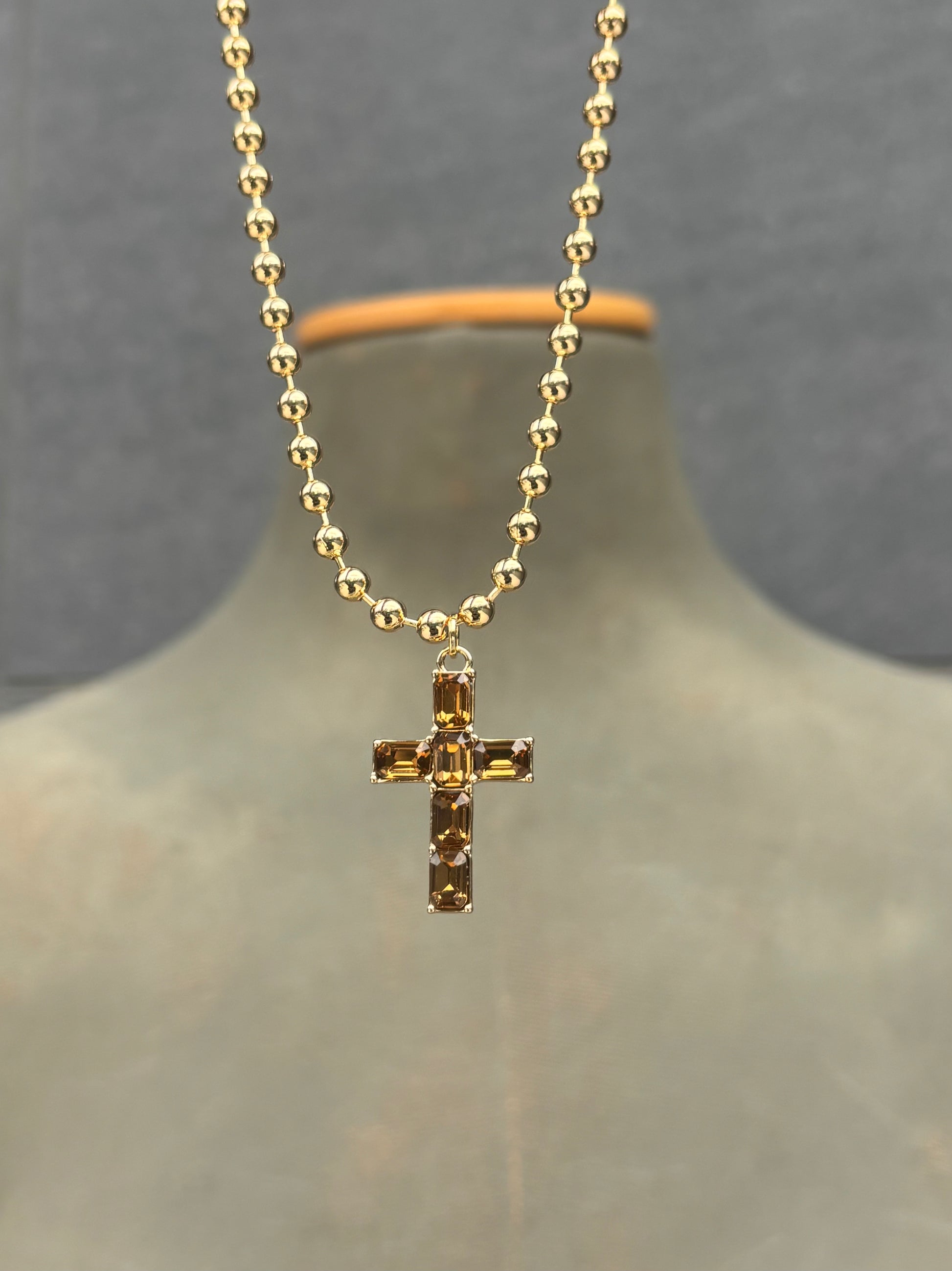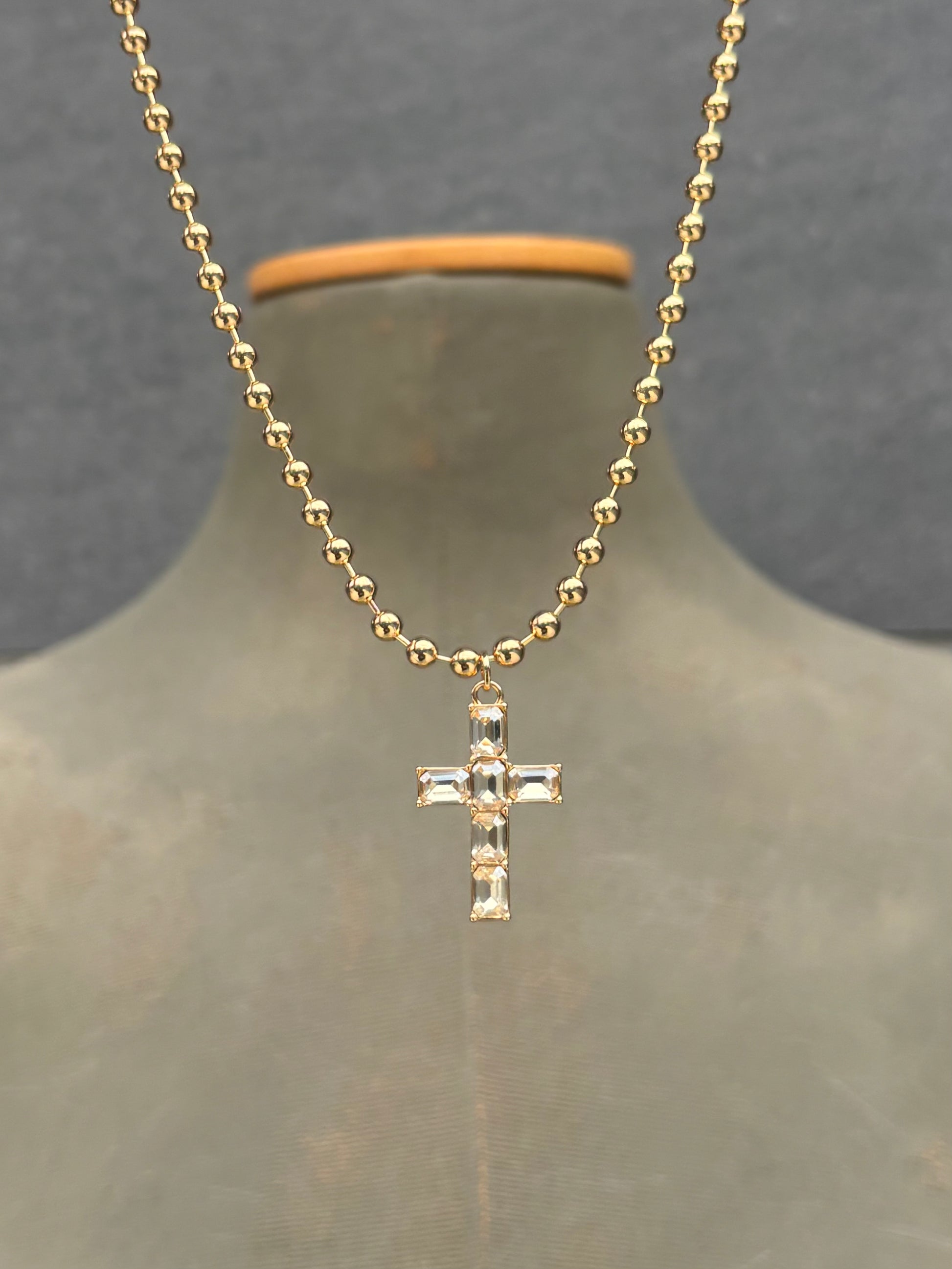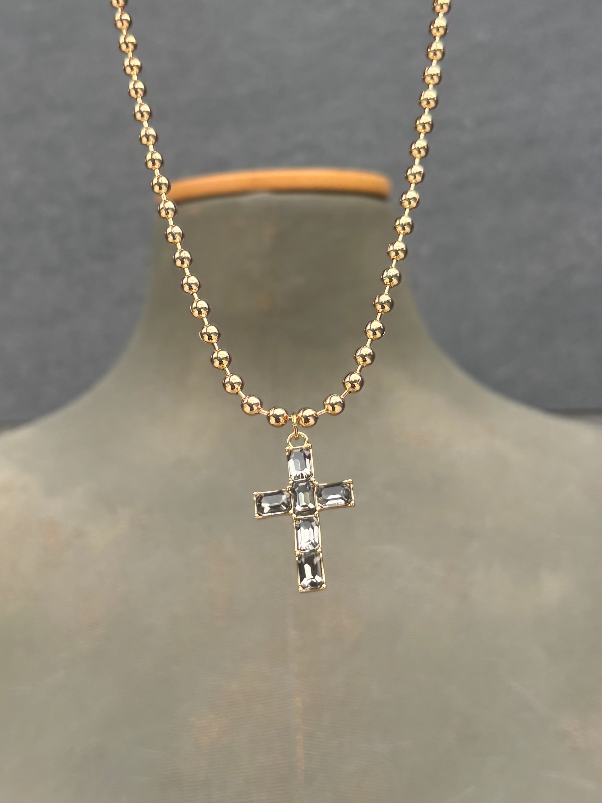 Collar de bolitas de aluminio y pieza de cruz de alta bisutería.