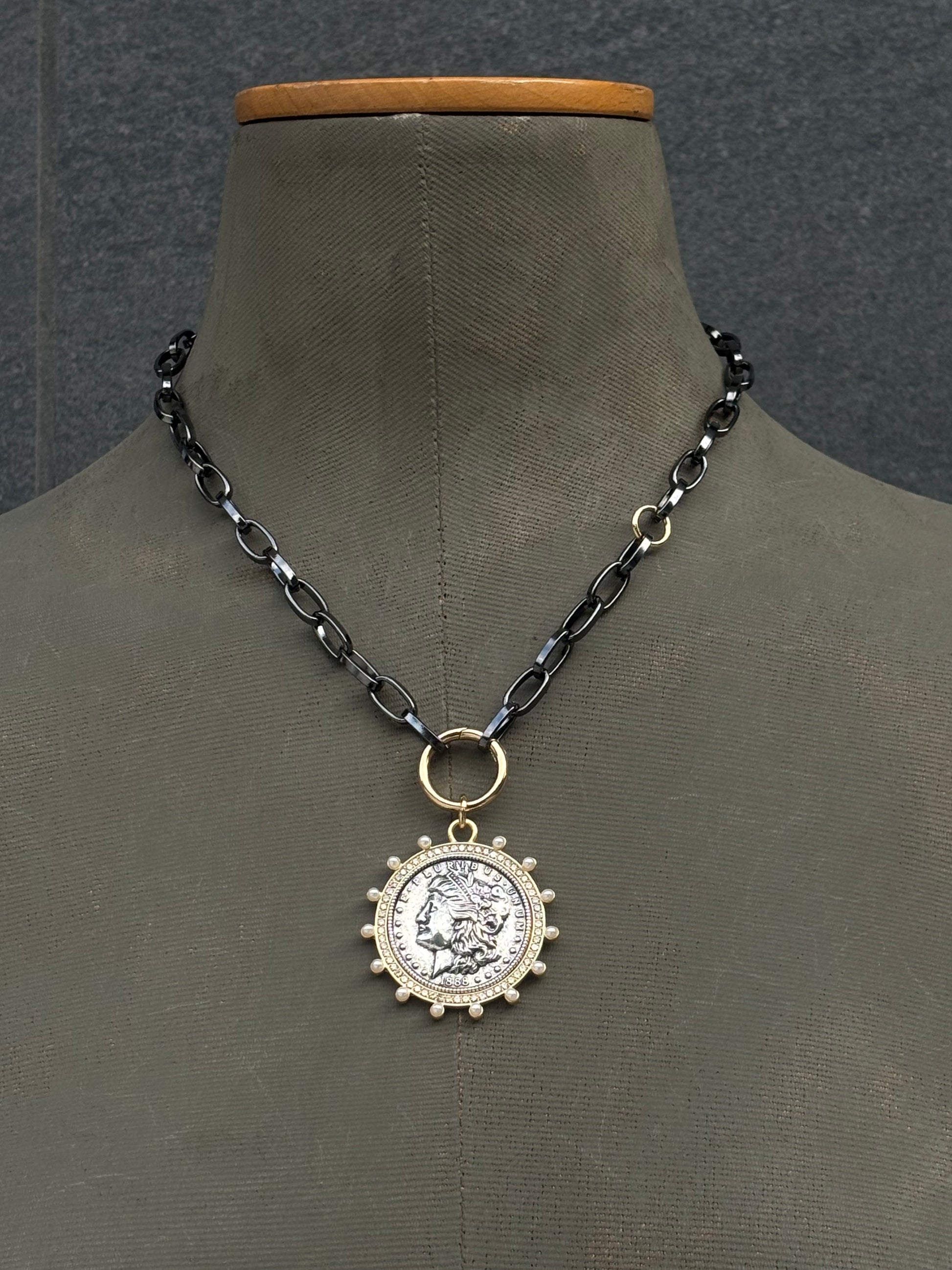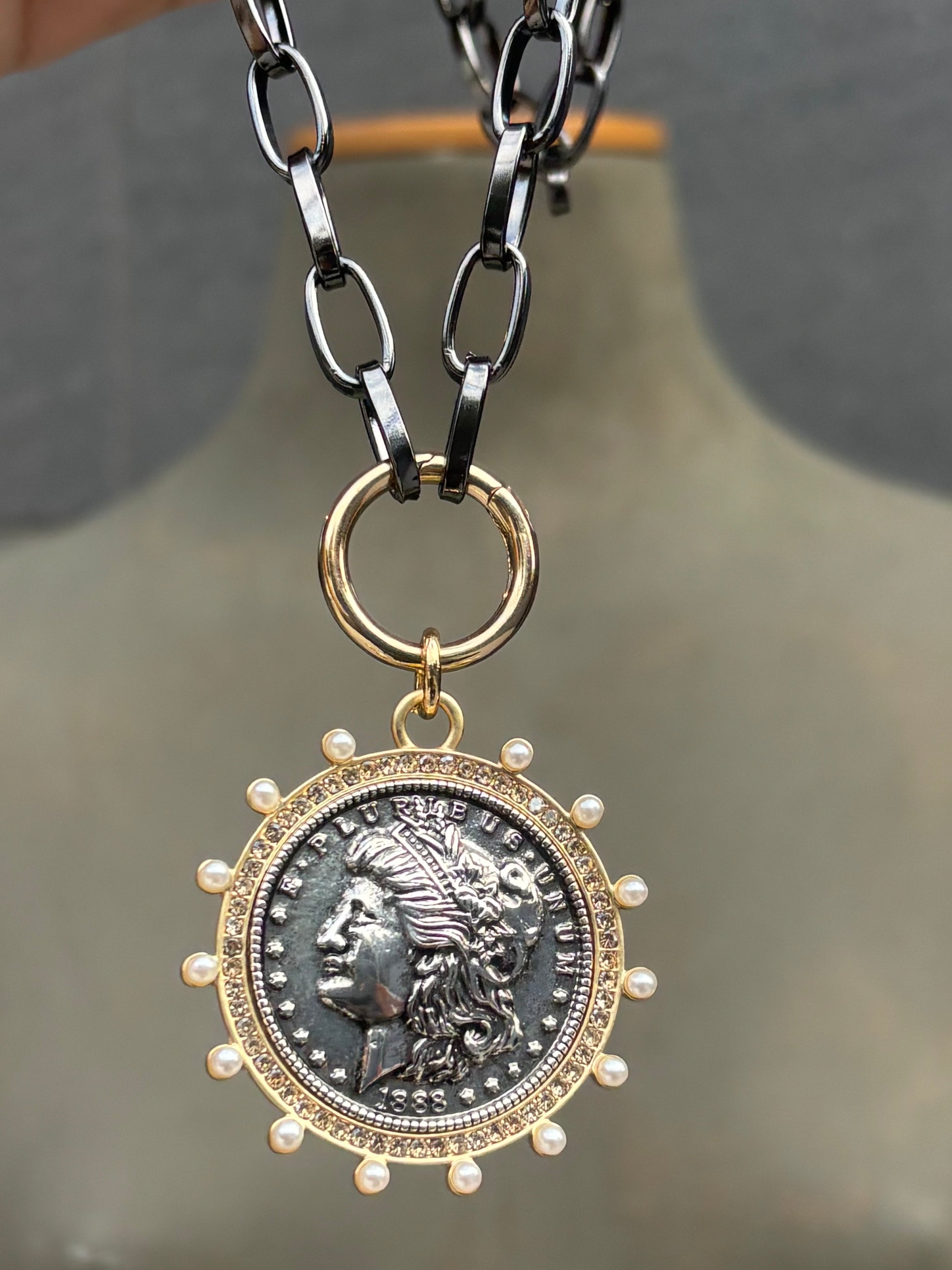 Collar con mosquetón y medallón intercambiable, que puedes llevar solo o personalizar con tu propia cruz o charm.
