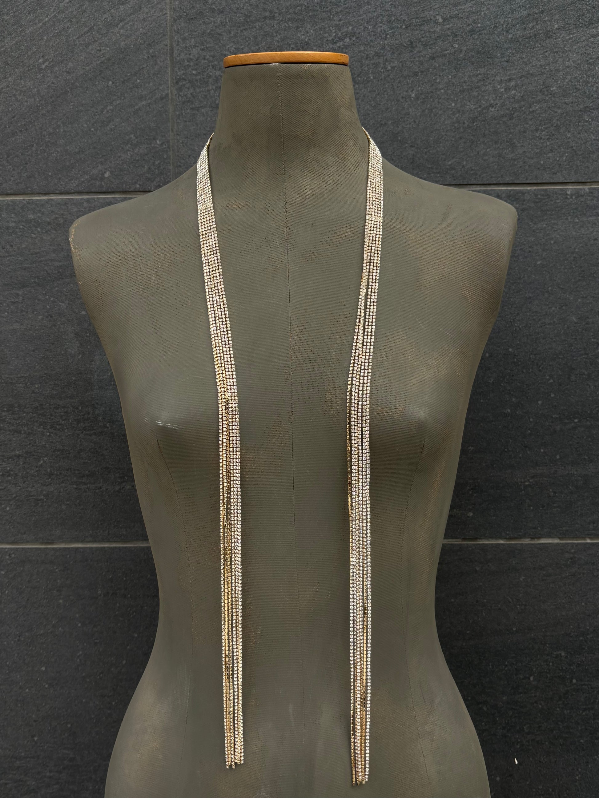 Diseño de cinta de fantasía de strass con flecos.