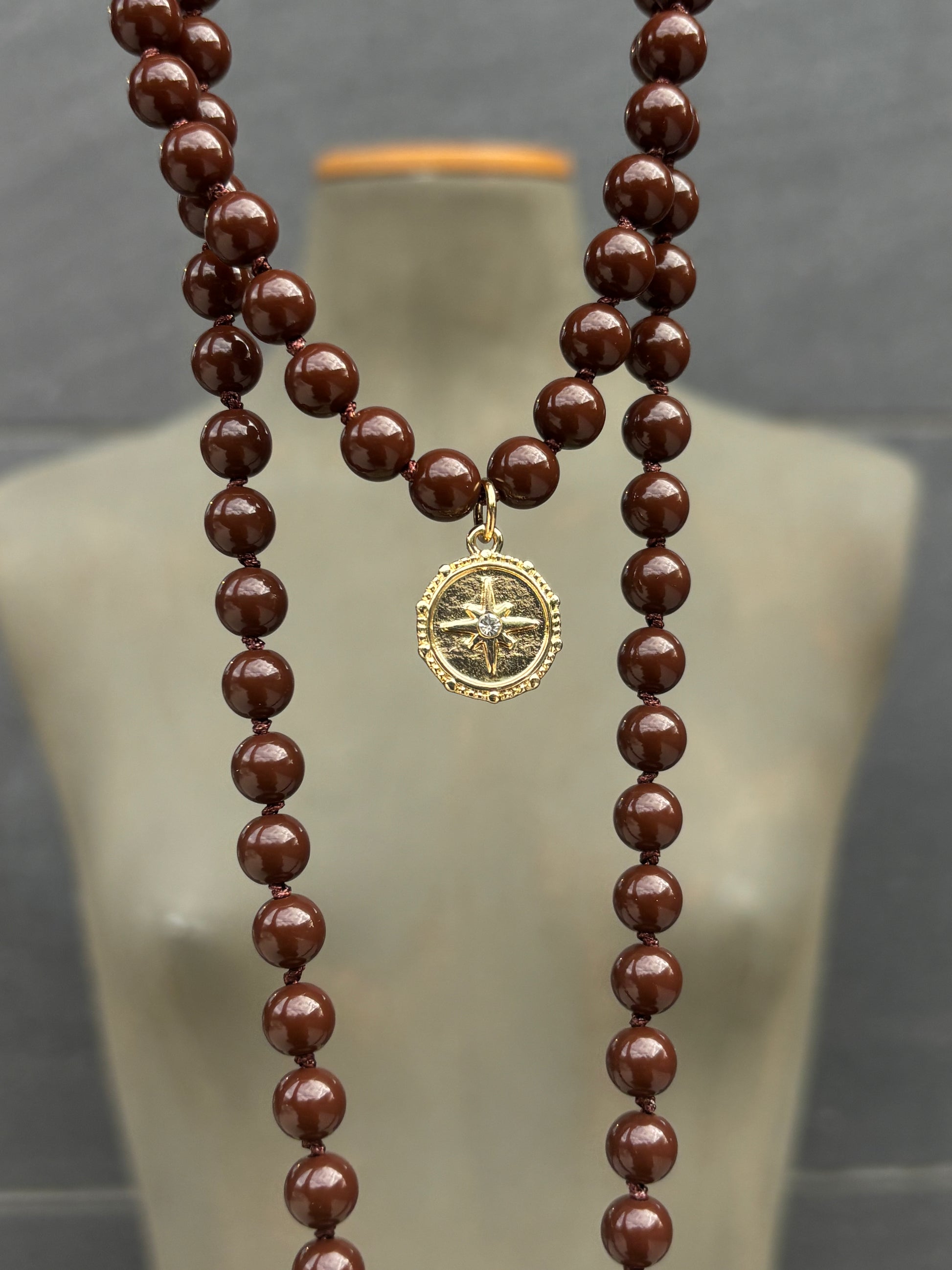 Collar de bolitas de resina de doble vuelta.