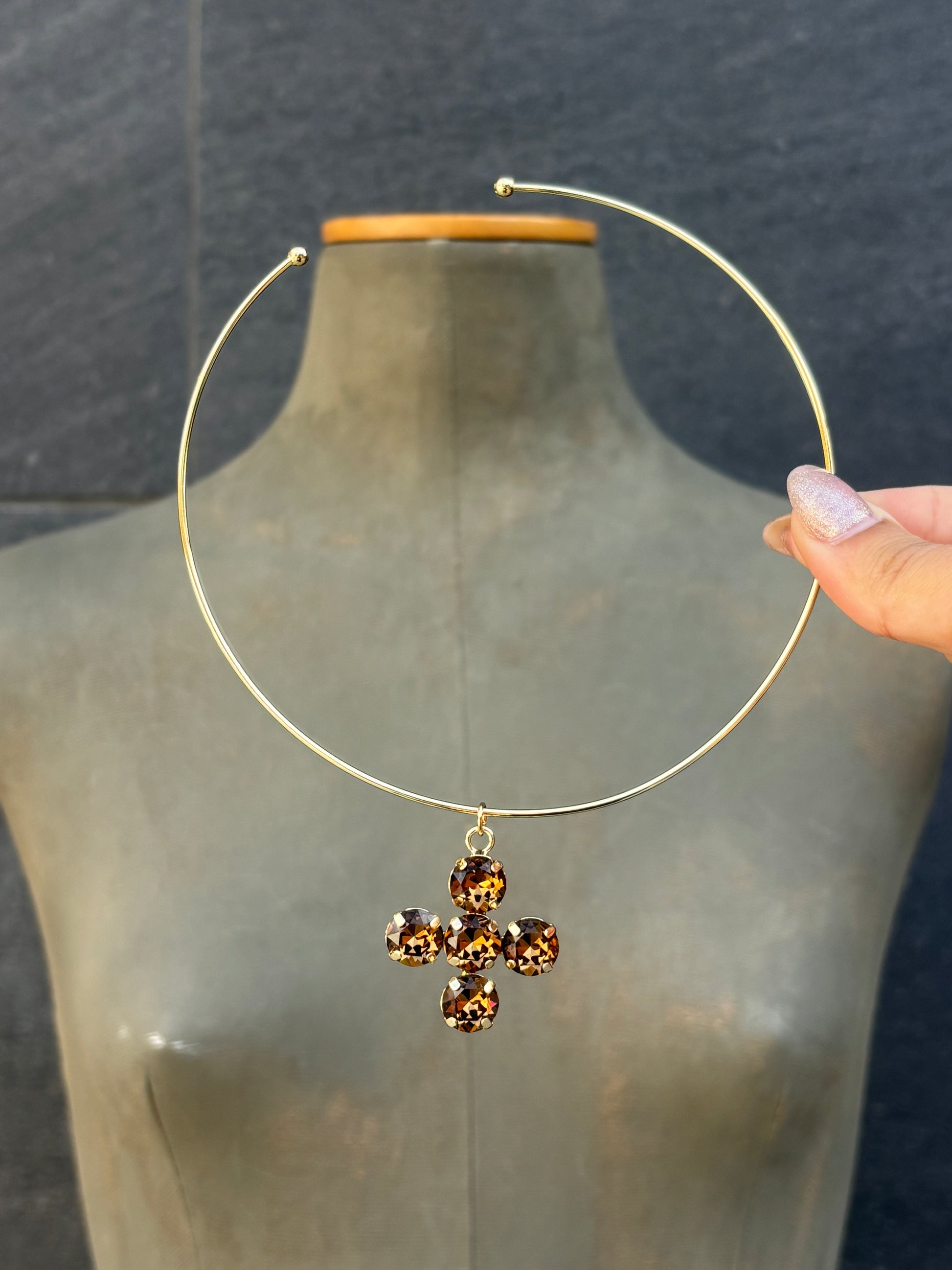 Collar chocker lisa en forma de aro con Cruz.