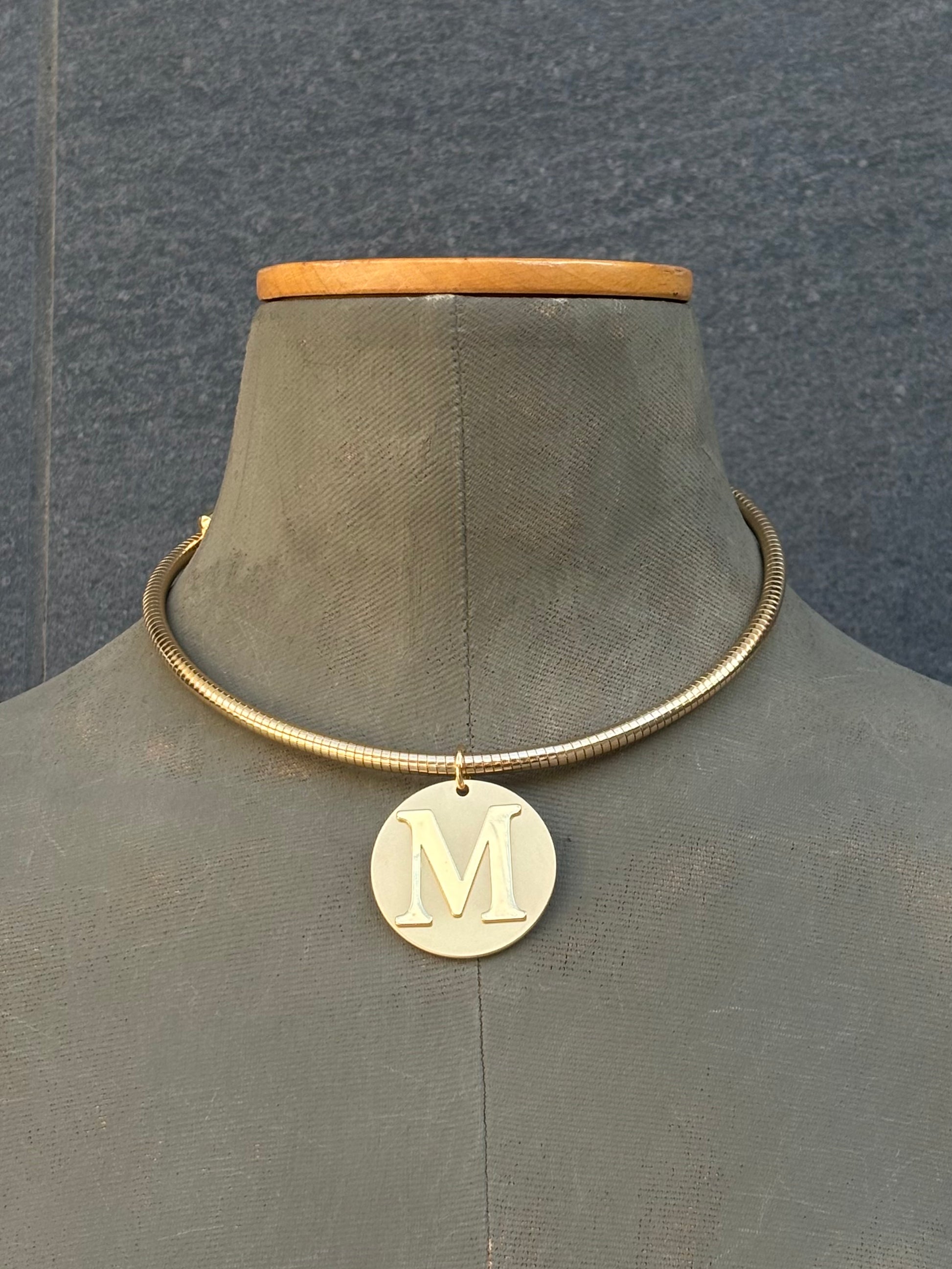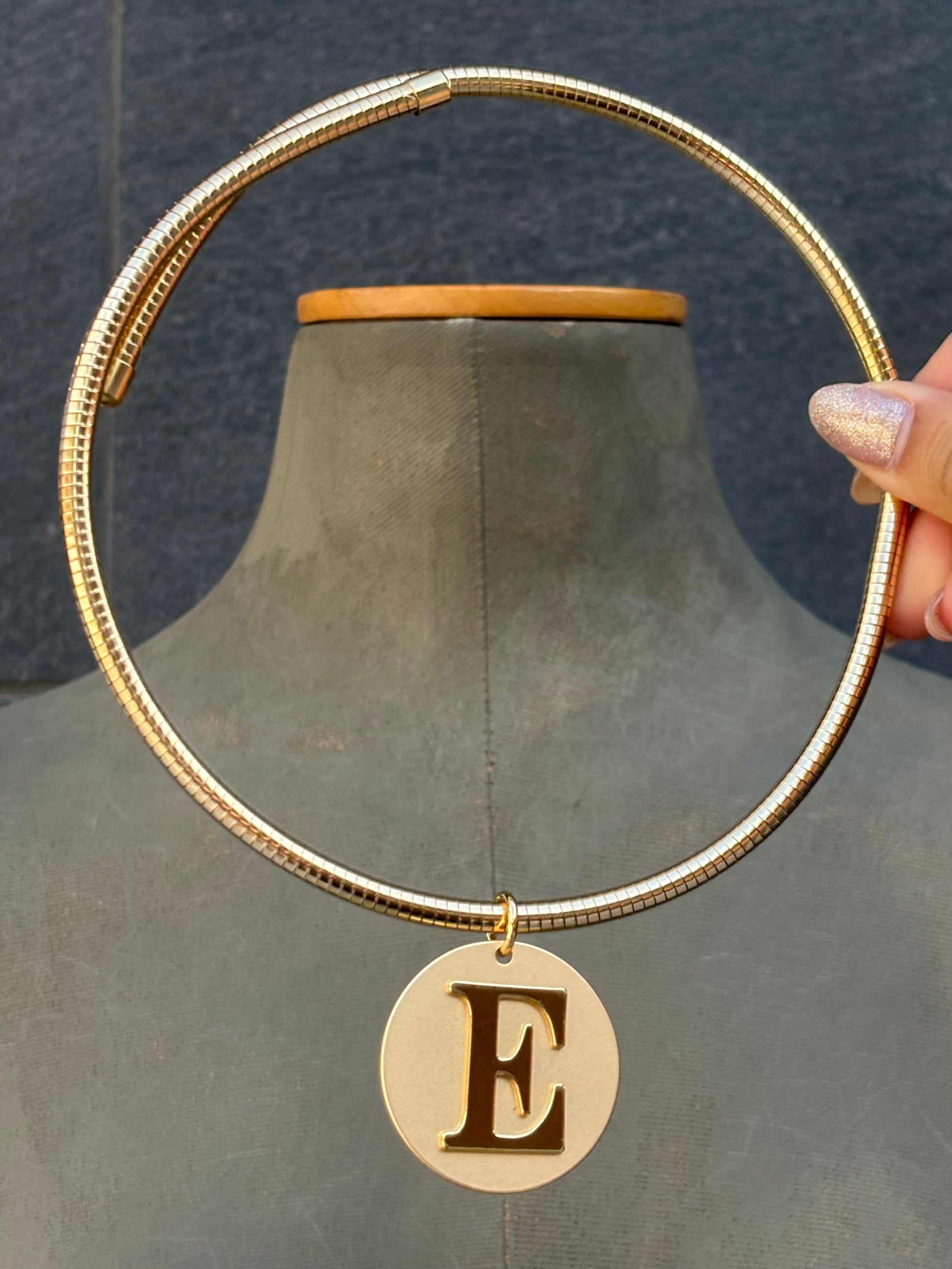 Medallón inicial de latón con baño de oro de 18 kltes.