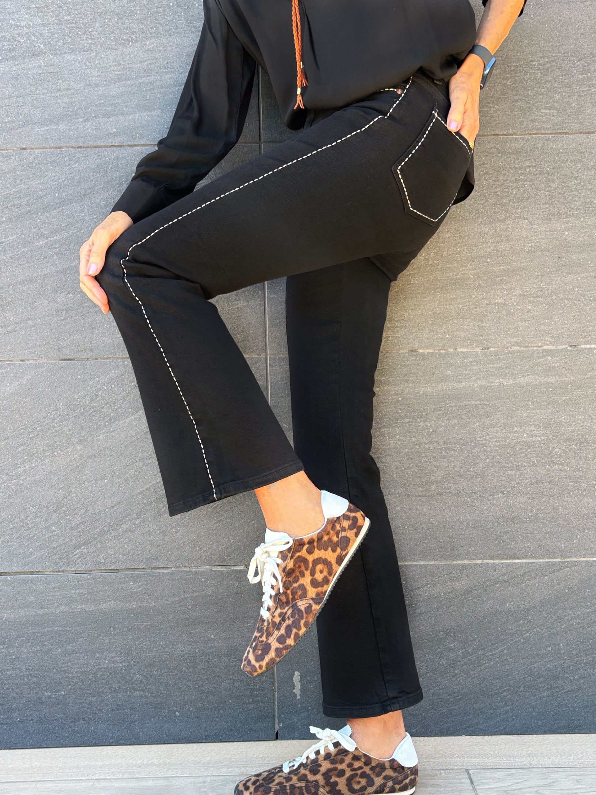 Pespunte de fantasía de color beige en laterales y bolsillos. Lo que le aporta un toque muy chic al pantalón!
