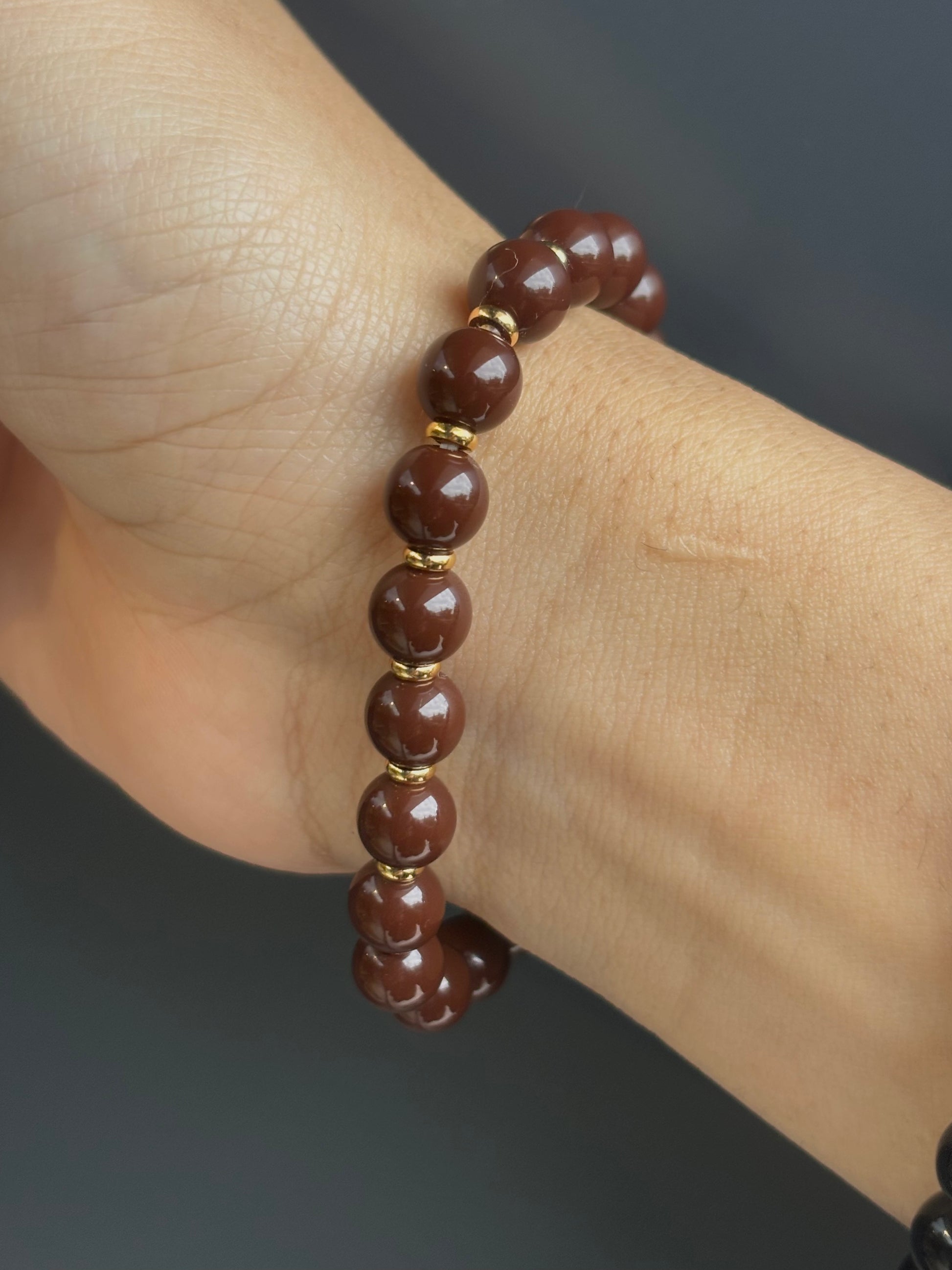 Pulsera de bolas de resina elástica con piezas doradas intercaladas.