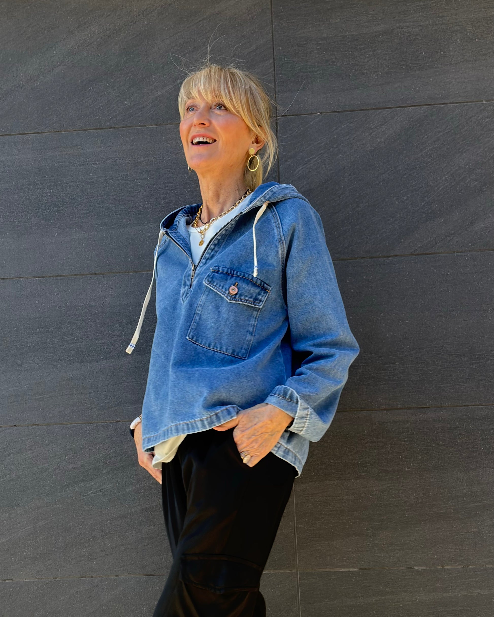 Tejido denim con efecto lavado suave.