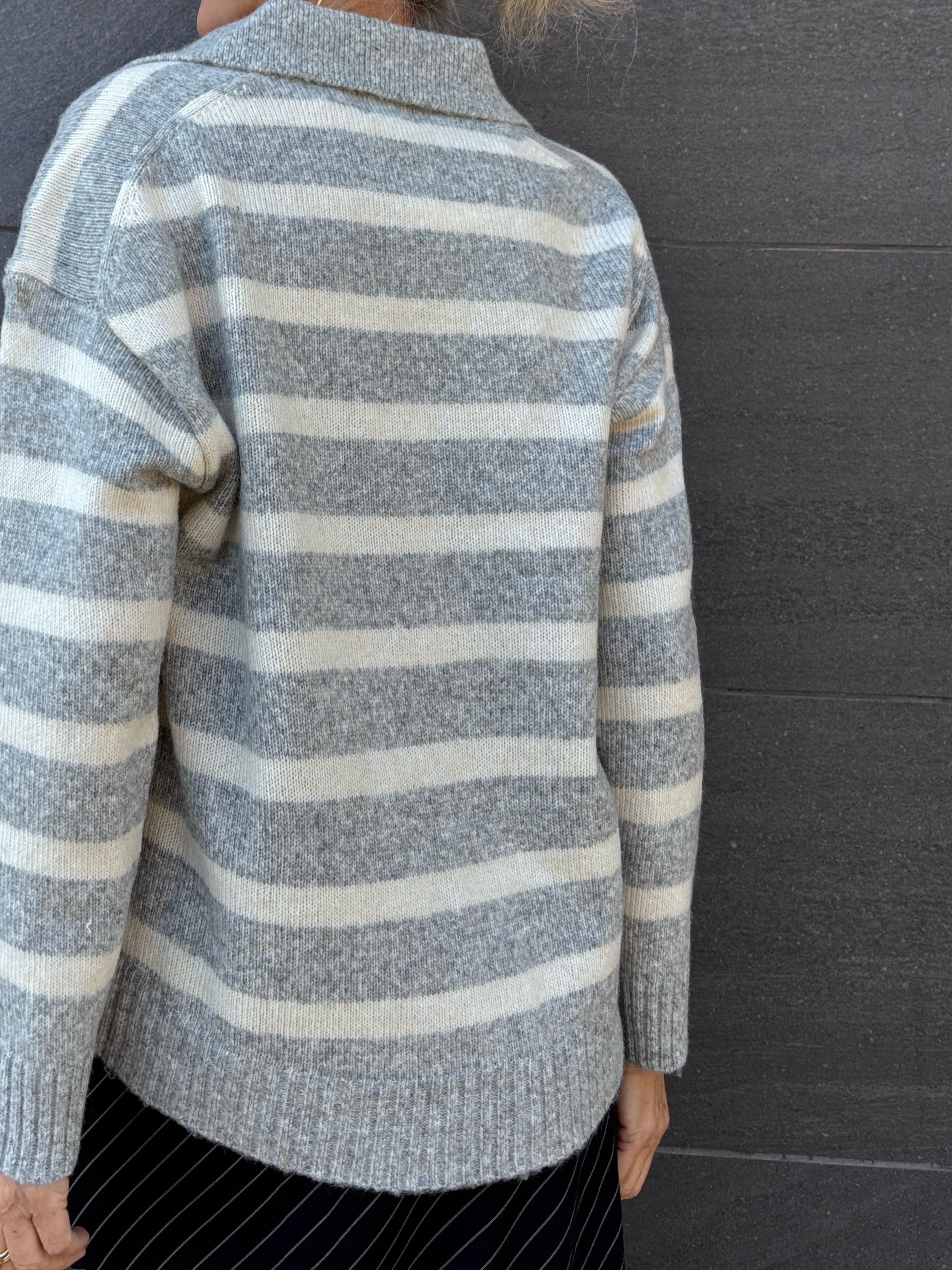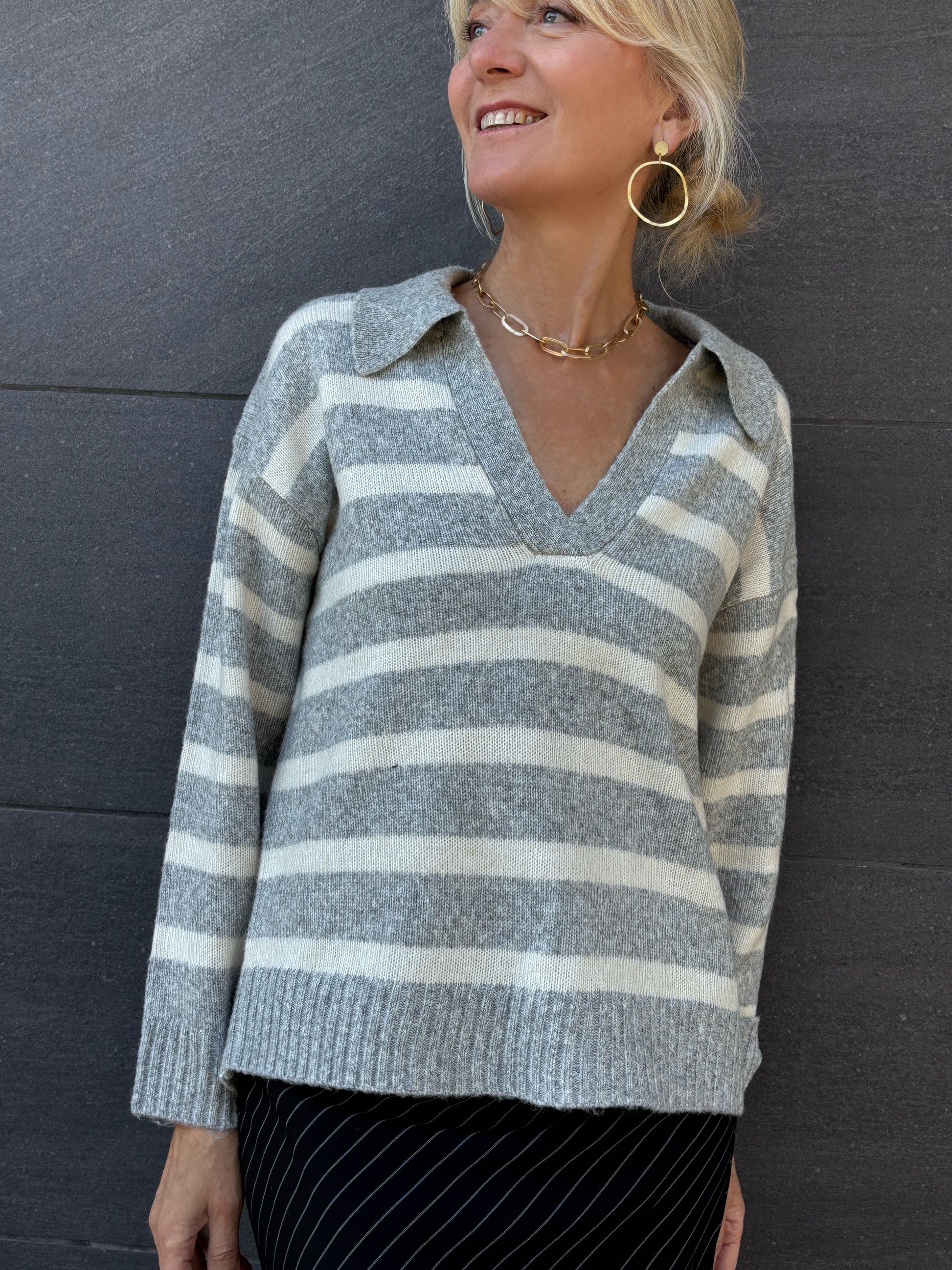 Suéter de rayas y polo con cuello. ¡Muy favorecedor!